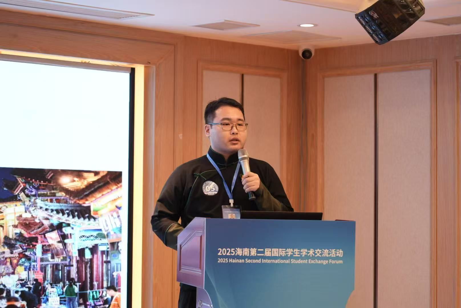 活动期间,来自各界的专家学者围绕海南自贸港潜力,为参赛学生搭建了交流学习、展现风采的优质平台。我院蒙古国留学生BUYANKHUU紧扣活动主题,结合在华学习生活经历与对海南自贸港发展的观察思考,进行了生动的学术演讲,展现了我院国际学生良好的跨文化沟通能力与学术研究潜力。艾敏老师全程悉心指导,从演讲主题打磨、内容逻辑梳理到表达技巧优化给予全方位支持,助力学生充分发挥自身水平。