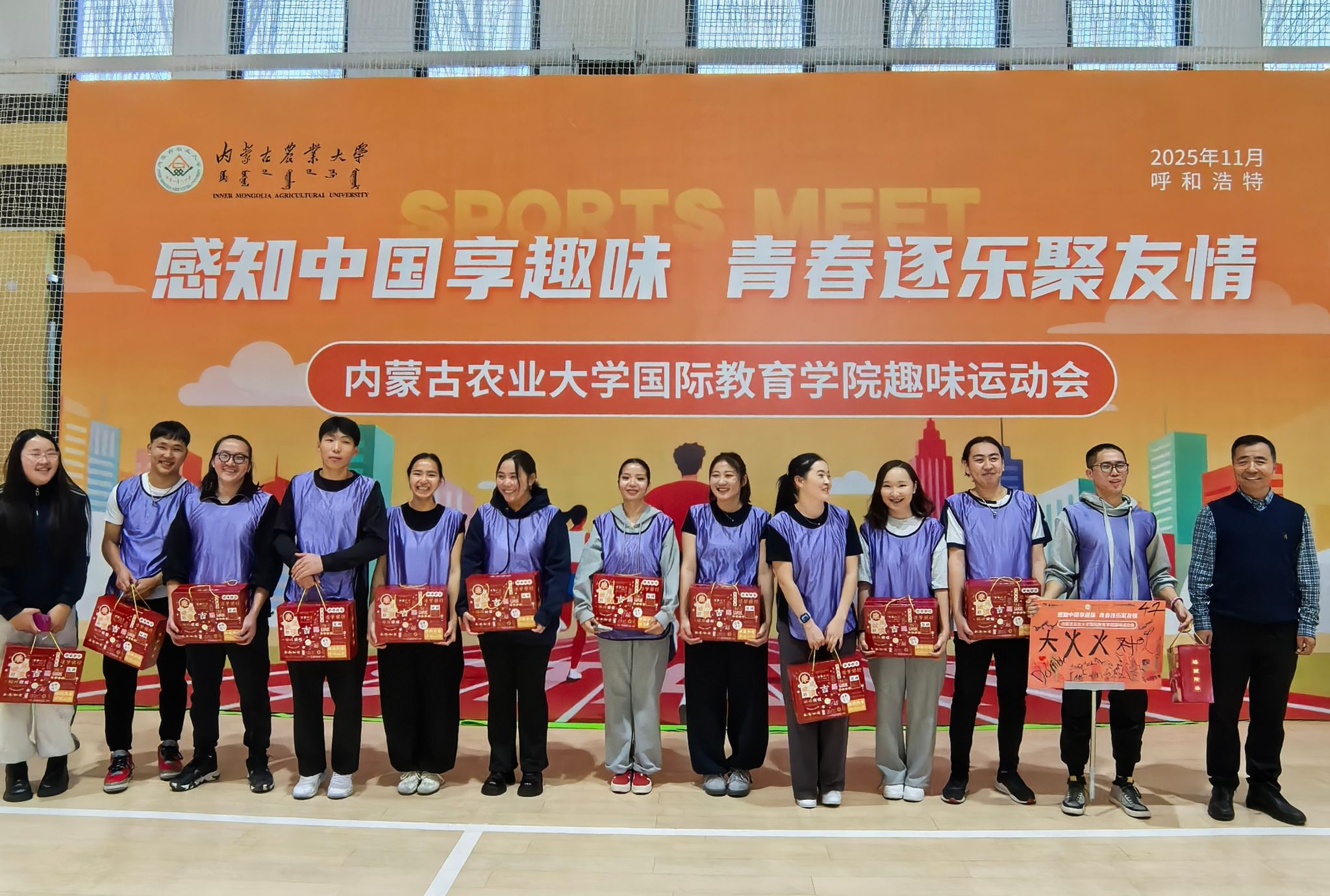 为帮助来华留学生更好感知中华文化,增进我院学生间交流互动,让同学们在趣味运动中释放活力、展现风采,11月22日,我院于新区足球馆举办了“感知中国享趣味 青春逐乐聚友情”趣味运动会。我院40余名学生参加了本次趣味运动会。