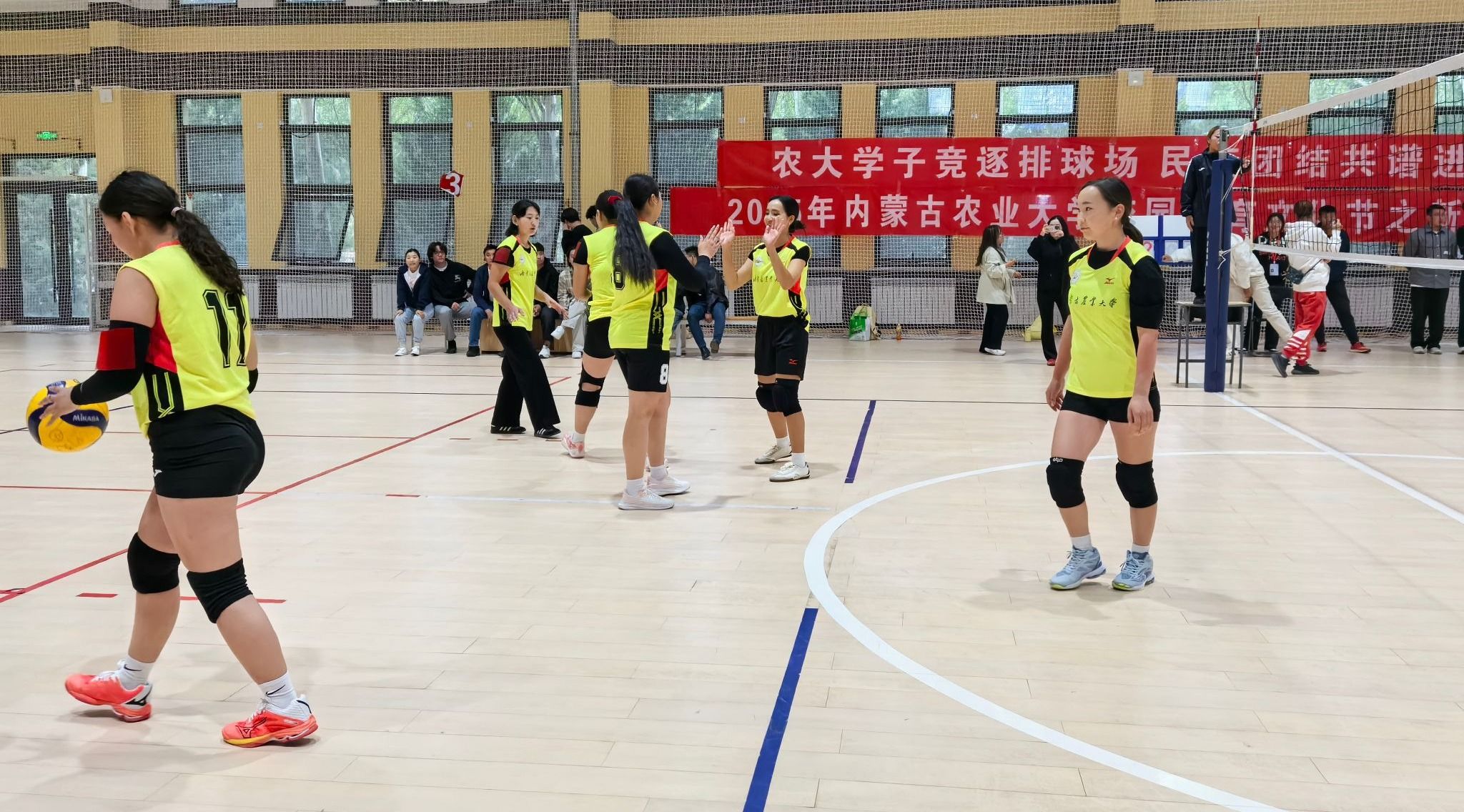 赛场上,队员们充分展现了良好的竞技状态。凭借精准的发球、稳固的防守、巧妙的配合和坚韧的毅力,在多场关键比赛中顶住压力,以昂扬的斗志力克对手;展现了自己的风采。每一次精彩的扑救、每一次默契的传接、每一次得分后的欢呼,都凝聚着队员们的汗水与智慧,也赢得了场边观众的阵阵掌声。